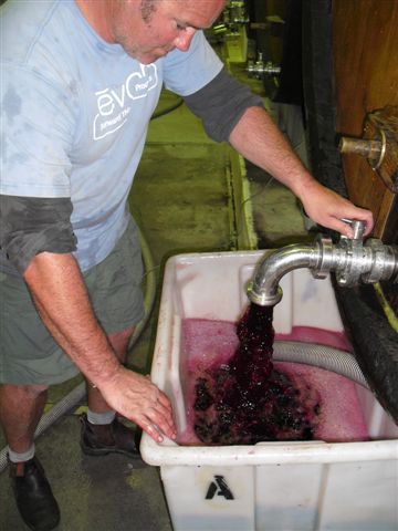 and lastly Adi makes sure all the wine is siphoned off the lees…
