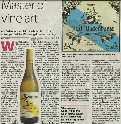 We have received lots of praise for our innovative labels, designed by Peet Pienaar, but this article explains the story behind the Secateurs label very well.