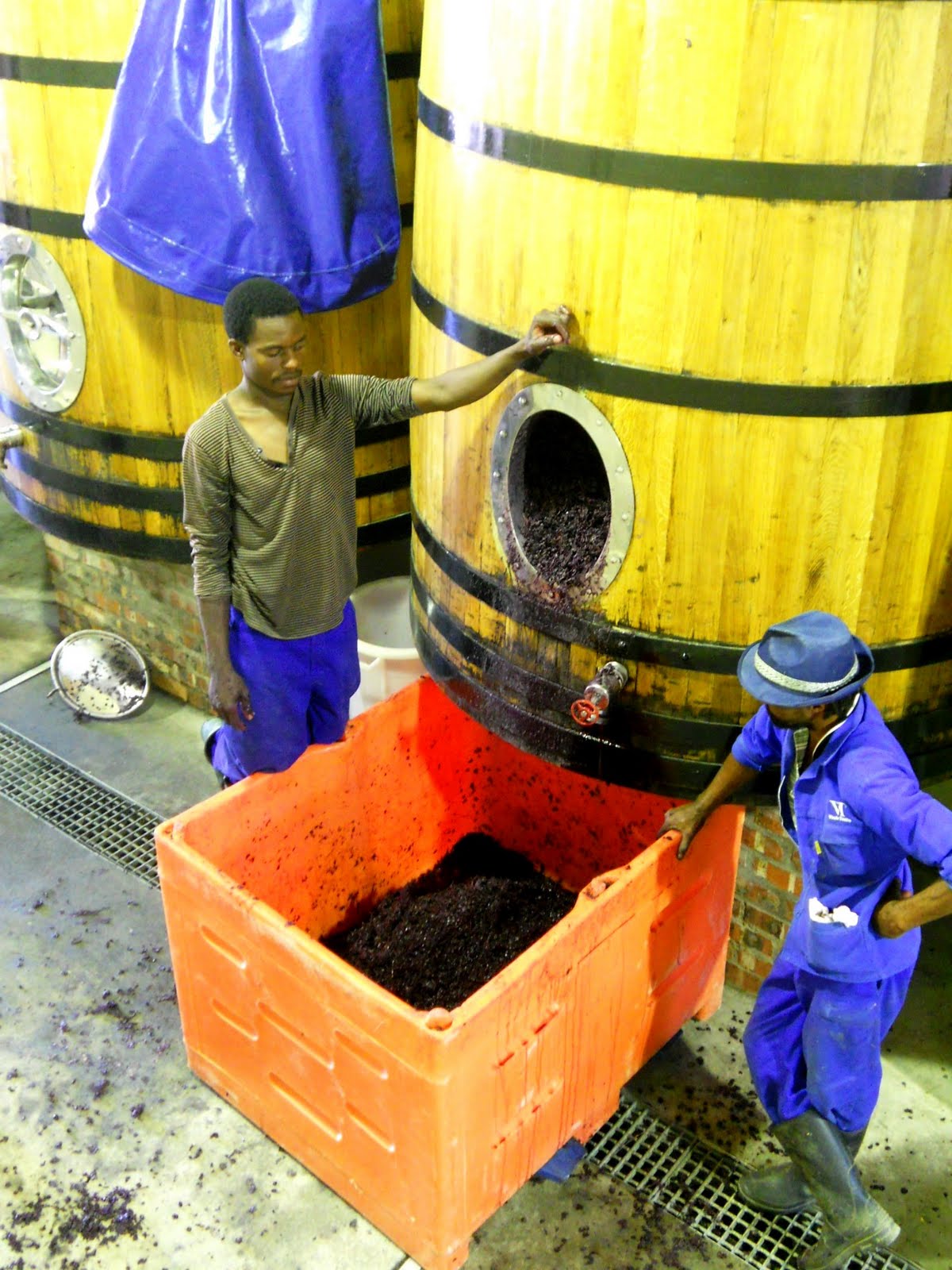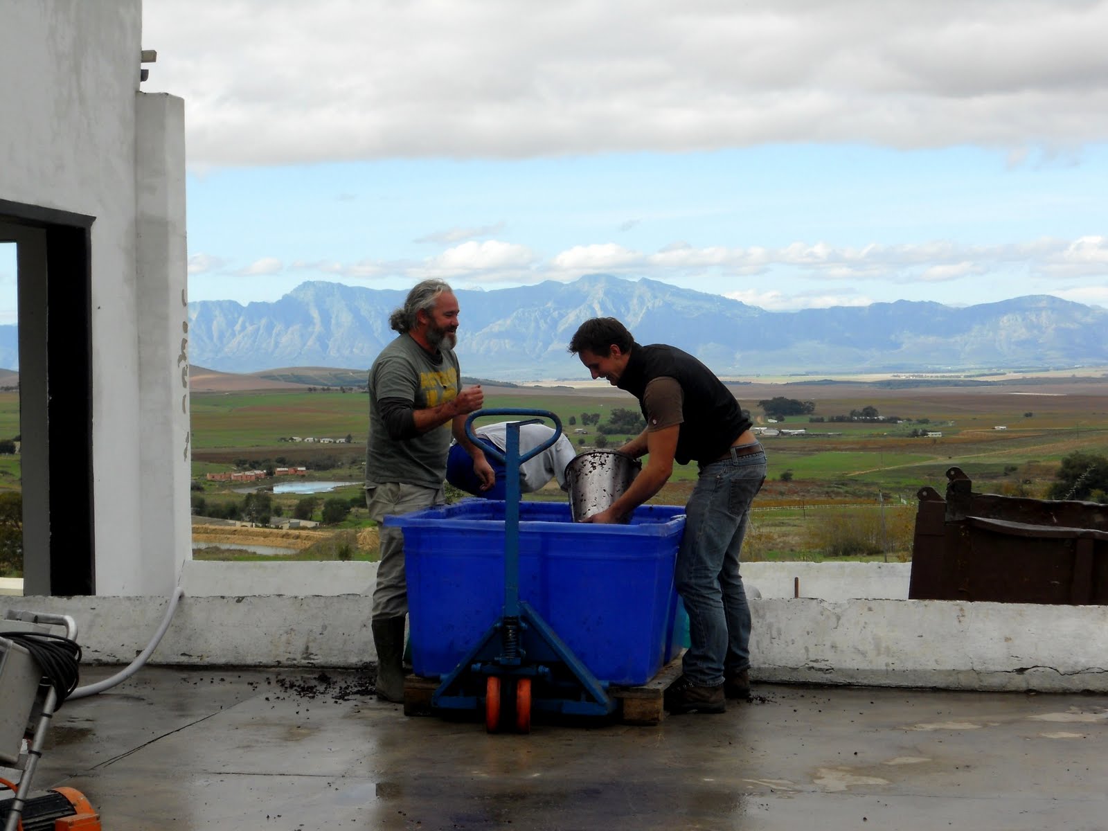The team consists of Adi’s assistant wine maker Jasper Wickens, Elena Kotzev a Viticulture student from Alsace, France who has been doing an “internship” and helping out during the harvest and season of 2011, farm workers Fortuin (a Swartland local) and Zimbabwean Trust! Also special mention to Pierre Rossouw, neighbour and grape farmer.