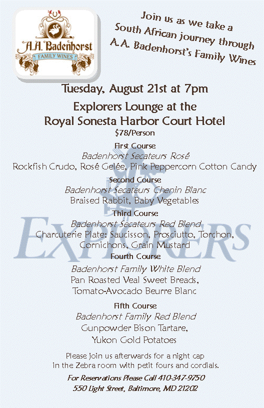 Explore our wines in Baltimore Posted on August 5, 2012 by quietriotgirl -33.931801 18.415412 Share this: Click to share on X (Opens in new window) X Click to share on Facebook (Opens in new window) Facebook Like Loading... Related