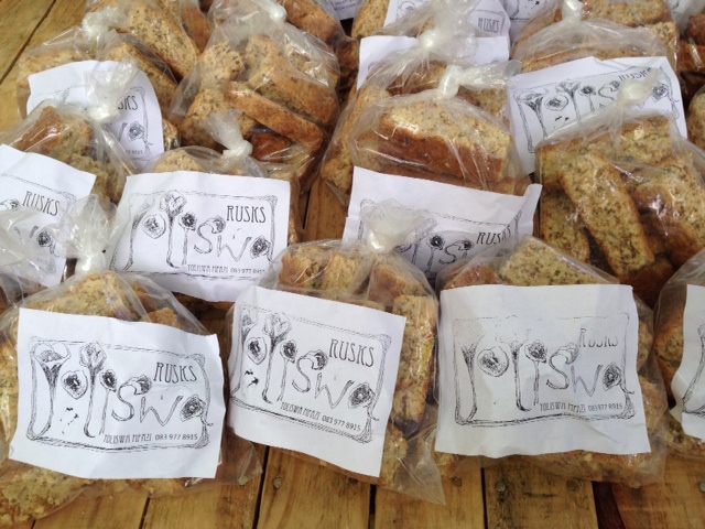 While at the food market Yoliswa sold her (world famous, if you consider the guests who have enjoyed them at our cottage on Kalmoesfontein) rusks under the trees.