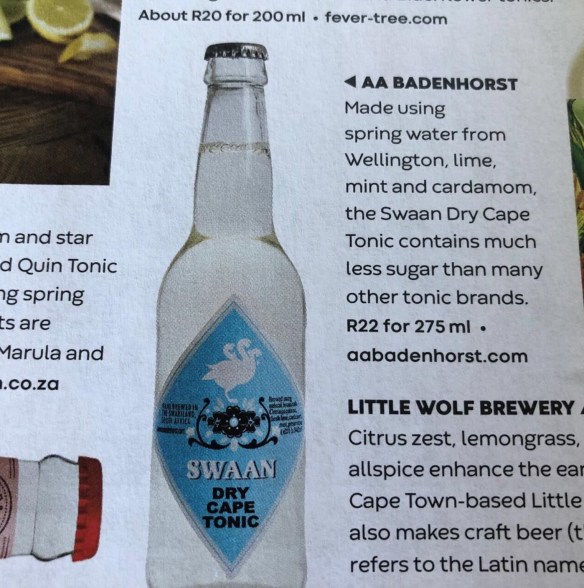Visi Magazine mentions our Swaan tonic water in the latest issue.