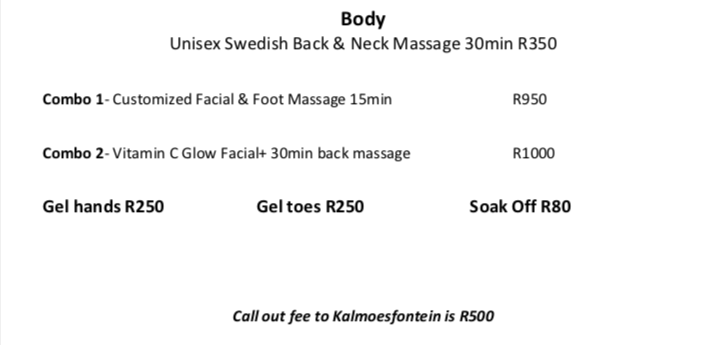 Always keen to keep things in the family, this mobile beauty salon is run by one of our cousins, Jana. They keep everything covid-safe and sound, have a look at their treatment menu and contact them directly should you be interested.