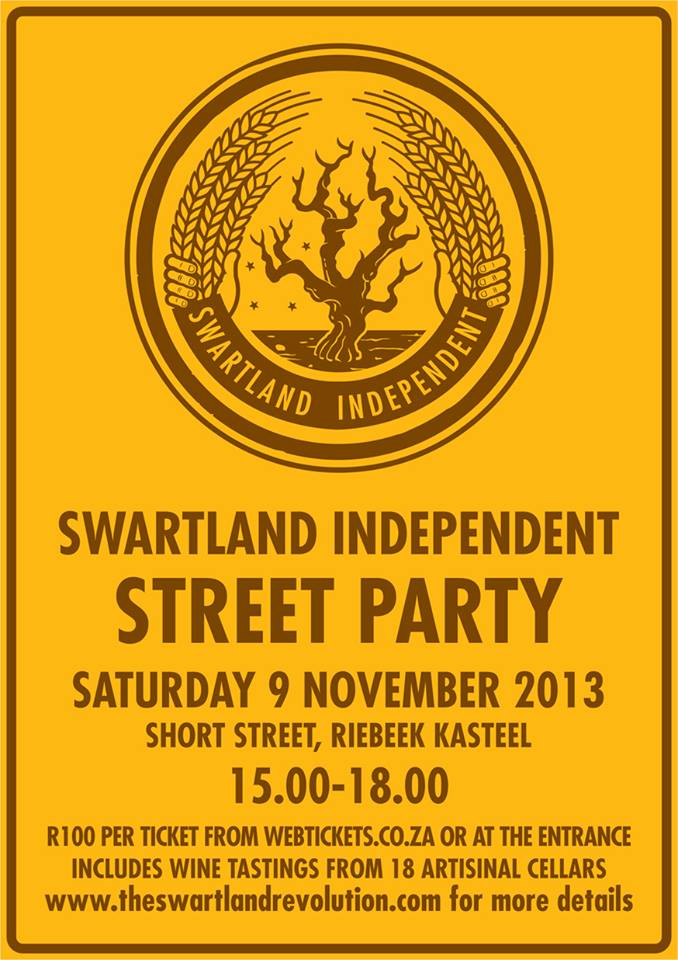 If you did not get a ticket to the event, come to Riebeek for the Swartland Independent Street Party that afternoon, taste wine from 18 SI members and mingle in the streets. See you there.