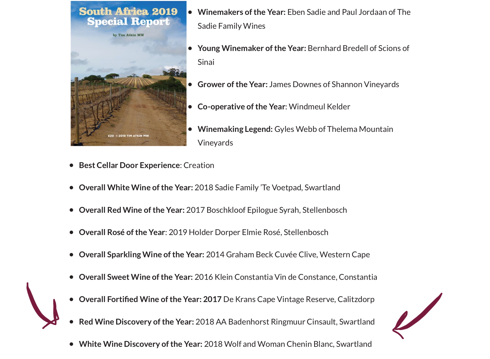 We received a nice thumbs up from Tim Atkin (and three wines with 95+ points)