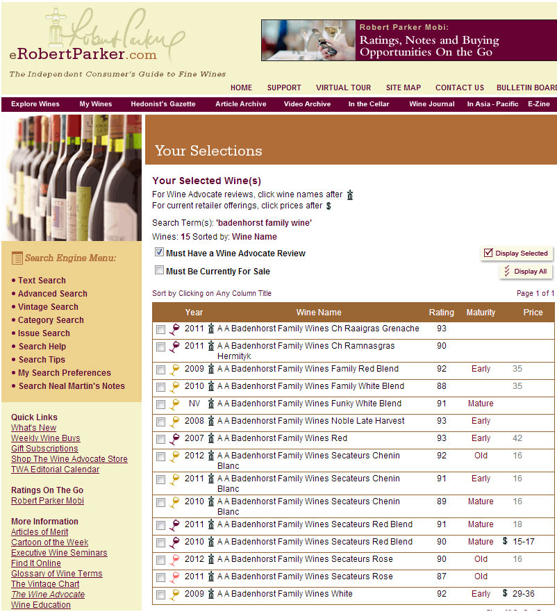 Last night Adi casually mentioned the wine advocate ratings in conversation. Today I went to take a look at the latest scores and, while Adi will never ‘gooi’ them into a tasting or mention them at a trade show, I have to brag.